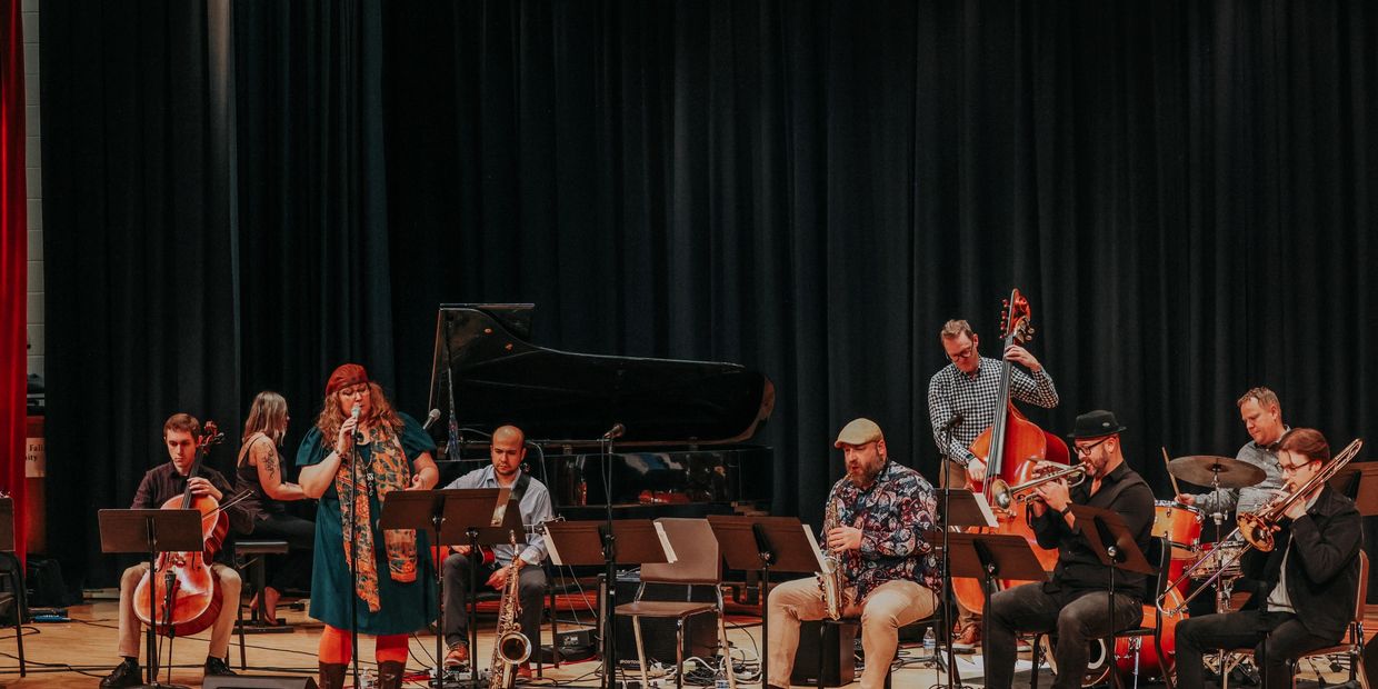 Composer/vocalist/woodwind tone poet Rachel Bade-McMurphy envisions the Glass Bead Orchestra as an ensemble that can expand to work with a number of additional musicians based around the core ensemble of 3 winds, 2 strings and jazz rhythm section. Core members include Rachel Bade-McMurphy, Brendan McMurphy, Jared Hall, Cameron Laplante, Kate Skinner, Matt Peterson and a rotating cast of additional members.